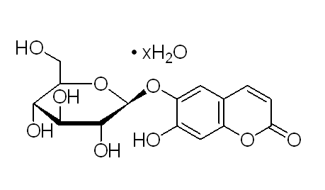 别名 秦皮甲素 ;七叶灵倍半水合物,七叶苷,6-(beta-D-吡喃葡糖氧基)-7-羟基-2H-1-苯并呋喃-2-酮;6,7-Dihydroxycoumarin 6-glucoside hydrate 6-(beta-D-Glucopyranosyloxy)-7-hydroxy-2H-1-benzopyran-2-one 7-Hydroxycoumarin-6-yl beta-D-Glucopyranoside Esculin Sesquihydrate