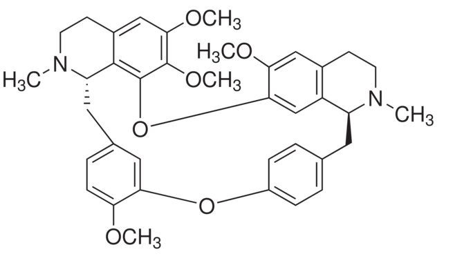 别名 粉防己碱 ;汉防己碱,汉防己甲素;;(1β)-6,6′,7,12-Tetramethoxy-2,2′-dimethylberbaman ,Tetrandrine