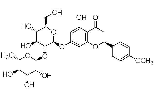 别名 枸橘甙;(S)-5,7-Dihydroxy-4'-methoxyflavanone-7-[2-O-(α-L-rhamnopyranosyl)-β-D-glucopyranoside]; Isosakuranetin-7-neohesperidoside;Neohesperidoside isosakuranetin-7;4'-O-Methylnaringin