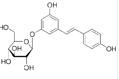别名 虎杖甙;云杉新甙;白藜芦醇甙;3,4′-5-三羟基二苯乙烯-3-β-D-吡喃葡萄糖苷;3,4′-5-Trihydroxystilbene-3-β-D-glucopyranoside; 4',5-Dihydroxystilben-3-yl β-D-Glucopyranoside; Resveratrol 3-Glucoside; Piceid; Reservatrol-3-β-mono-D-glucoside; Resveratrol 3-O-β-D-glucopyranoside