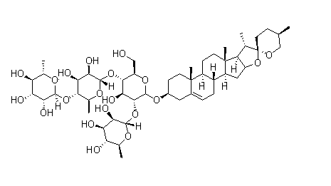 别名 重楼皂苷B;七叶莲提取物;Formosanin C;Paris II; Paris saponin II; Parissaponin Pb; Parrisaponin; (3beta,25R)-Spirost-5-en-3-yl O-6-deoxy-alpha-L-mannopyranosyl-(1-2)-O-[O-6-deoxy-alpha-L-mannopyranosyl-(1-4)-6-deoxy-alpha-L-mannopyranosyl-(1-4)]-beta-D-glucopyranoside
