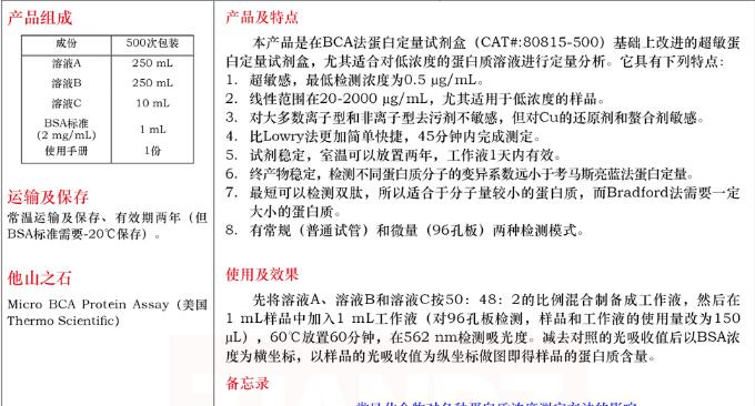 产品名称:超敏型 BCA 法蛋白定量试剂盒
