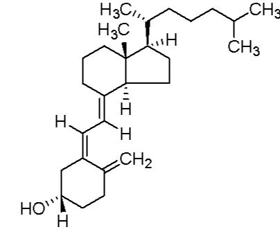 Cholecalciferol is a naturally occuring form of vitamin D. Reported that upon metabolic activation, Cholecalciferol induces cell differentiation and prevents proliferation of cancer cells. Vitamin D acts through a receptor that is a member of the ligand-dependent transcription factor superfamily. Modulates the proliferation and differentiation of both normal and cancer cells. Has antiproliferative and antimetastatic effects on breast, colon, and prostate cancer cells. Activated vitamin D receptors in intestine and bone maintain calcium absorbance and homeostasis.
