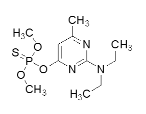 别名 甲基嘧啶磷;O-(2-二乙基氨基-6-甲基-4-嘧啶基)-O,O-二甲基硫代磷酸酯;