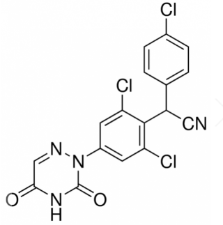 别名地克珠利 ;迪克珠利,杀球灵,刻利禽,2,6-二氯-2-(4-氯苯)-4-(4,5-二氢-3,5-二氧代-1,2,4-三嗪-2(3H)-基)苯乙腈;2,6-Dichloro-α-(4-chlorophenyl)-4-[4,5-dihydro-3,5-dioxo-1,2,4-triazin-2(3H)-yl]benzeneacetonitrile